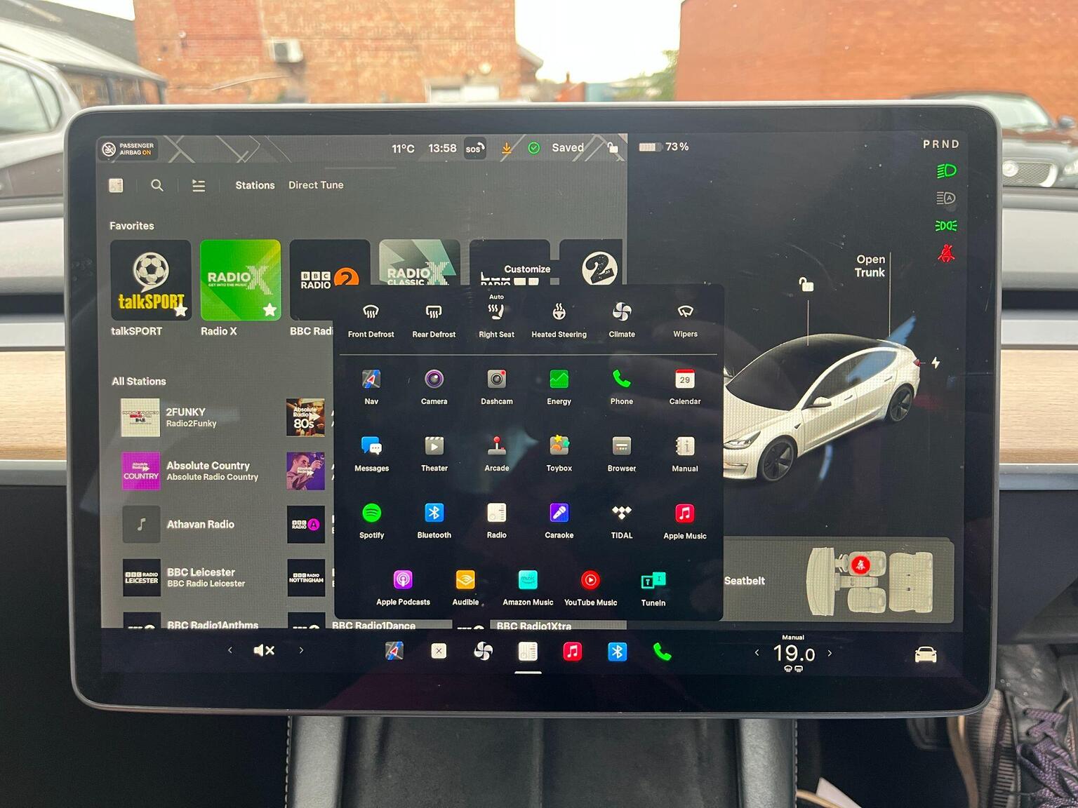 LED Headlights, Lane Departure Warning, Location-Aware Automatic Garage Door Opener, Map and Reading Lights, Matt Finish Trim, Media Storage, Metalised Scroll Wheels - Steering Wheel, Mobile Phone App Interface, Navigation System, Non-Safety-Critical Software Updates over Cellular, OEM Sound System, Park Assist Camera, Power Steering - Speed Sensitive, Powerlift Trunk, Premium Audio - 14 Speakers - 1 Subwoofer - 2 Amps and Immersive Sound, Radio - AM-FM - Internet Streaming, Rear Cross Traffic Camera, Rear Electric Windows, Rear Headrests, Rear Light - LED, Rear Parking Sensor, Remote Central Locking, Reverse Parking Aid, Satellite-View Maps with Live Traffic Visualisation and Navigation, Satin Black Sill Plates, Seats - Heated Front, Service Indicator, Software Updates over WIFI, Steer-By-Wire Technology, Steering Wheel Mounted Controls, Telephone, Tinted Glass Roof with Ultraviolet and Infrared Protection, Traction Control, Traffic Sign Recognition, Trip Computer, Two Additional USB-C Port, Type 2 Public Charging Connector, Tyre Pressure Monitoring System, USB-iPod Interface, Voice Activated Controls, Wi-Fi and LTE Internet Connectivity, 12-Way Power Adjustable Front and Rear Heated Seats, 15in Touchscreen with Onboard Maps and Navigation, 18in Alloy Wheels - Aero, 2 Zone Climate Control, 3x3 Point Rear Seat Belts, 60-40 Split Folding Rear Seats, ABS - Anti-lock Braking System, Adaptive Cruise Control, Adaptive Steering, Additional USB-A Port - Glove Compartment, Air Conditioning, Airbags - Curtain, Airbags - Driver, Airbags - Passenger, Airbags - Side, Ambient - Interior Lighting, Audio Remote Control, Auto Dimming - Power Folding - Heated Side Mirrors, Automated High-Beam Assist, Automatic Emergency Braking, Autopilot Function, Blind Spot Information, Bluetooth Connection, Body Coloured Bumpers, Centre Console with Storage - 4 USB Ports and Docking for 2 Smartphones, Collision Avoidance, Custom Driver Profiles, DVD, Daytime Running Lights - LED, Digital Radio, Electric Hinged Side Doors - Front, Electric Hinged Side Doors - Rear, Electrically Adjustable Drivers Seat, Electrically Adjustable Passenger Seat, Electrically Adjustable Steering Column - Tilt-Telescopic, Electronic Stability Control and Traction Control, Exterior Satin Black, Fixed Panoramic Glass Roof, Front Armrest, Front Cross Traffic Camera, Front Electric Windows, Front Fog Lights, Front Head Restraints, Front Parking Sensor, Graphite Finish Seat Controls, Heat Pump, Heated Steering Wheel, Height Adjustable Drivers Seat, In-Car Internet Streaming Music and Media, Inductive Charging Mats - Two Smartphones, Interior Carpeting, Interior Floor Mats, Internet Browser, Internet Connection, Isofix Child Seat Anchor Points, Keyless Entry and Remote Control with App, Keyless Go, LED Foglights